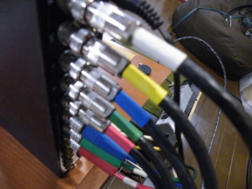 やっと5BNCケーブルが見つかったので、さっそく三菱のRGBデコーダを試してみました。上部にさしてあるのがNEBUさん謹製のケーブル。英国のサテライトケーブル「CT100」を使用しています。同じケーブルを接続しないと、比較になりませんが、カノープスの5BNC…