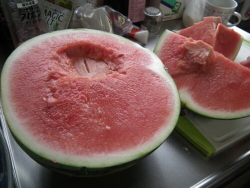 大人の事情で(笑この夏品薄なスイカ 先日の花火大会打ち上げで、k田さんから大玉ふたついただいた(もちろん手作り) タナ落ちしていたけれど、味は甘味が濃縮して激うま残りを先日、ponファミリーでいただきました こちらも美味〜 って来年はもらえるかな…