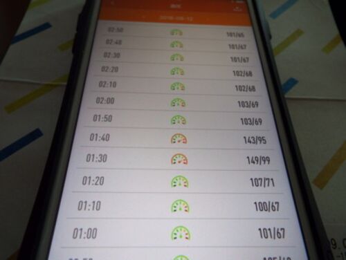 ponは安静時、血圧は100前後なんだけれどお経を上げているときは、20〜30程上がっているということはお盆参り中は、ずーーと高血圧モードってことなんだなところで、上の写真を見ると夜中に突然150ぐらいに血圧が上がっているけれどこれって、睡眠…
