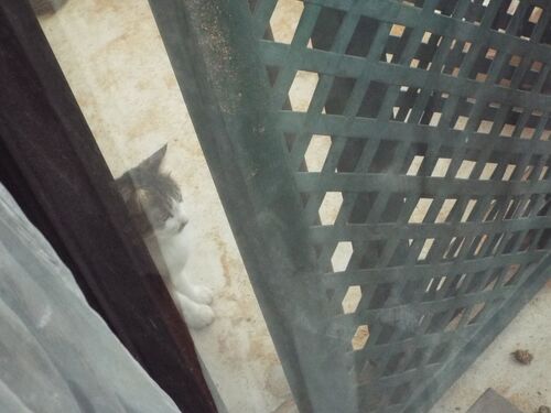 窓から覗くとしろがお見合い仲良くなるといいなぁ